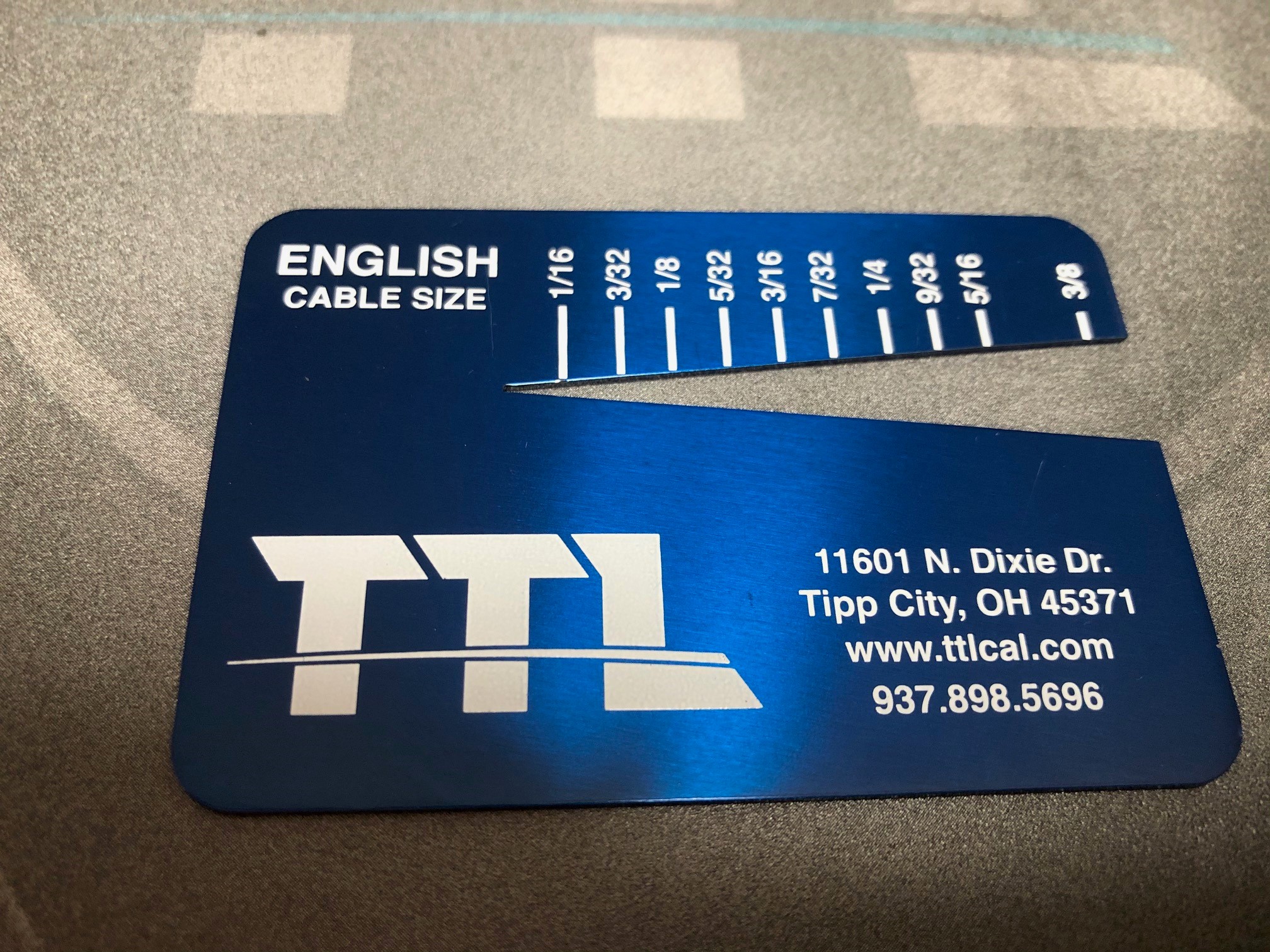 Our new cable sizing tool has arrived! Quickly and effectively measure cable thickness in both English and CWT standards. This is great for use with tensiometers and is included with a new tensiometer purchase. Size is 3″x2″